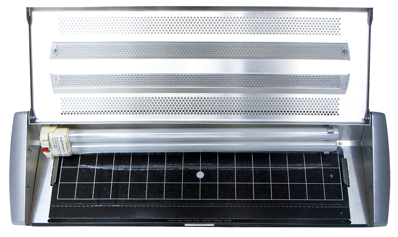 Spectra Compact is designed to deliver effective flying insect control in locations where installation space is limited. Its compact form allows it to be fitted into tight or awkward spaces without compromising performance. Using proven fluorescent UV technology, the powerful 36 W UVA bulb works in combination with the unit’s cover design to attract flying insects directly towards the glue board, ensuring fast and reliable capture in demanding environments.